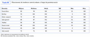 Taula III Mesuraments de tendència central avaluats a l'etapa de postintervenció