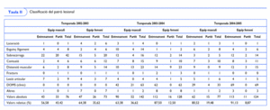 La classificació de la gravetat es va atribuir segons el nombre de dies que la lesió va mantenir el jugador apartat dels entrenaments programats o dels partits; això és, lleu (< 7 dies), moderada (8-28 dies) i greu (> 28 dies)9.
