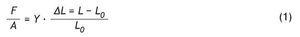 en què Y és una constant (mòdul de Young), que depèn de la composició del material, A és l’àrea de la secció transversal i T és la tensió exercida del material de longitud inicial (L0) i un canvi de longitud.