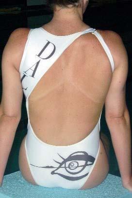 Quedaba un elemento muy importante: crear un bañador relacionado con la obra. Se consideró que nada sería mejor que estampar una buena fotografía del rostro de Dalí sobre el bañador. No fue fácil encontrarla y obtener el permiso para serigrafiarla. Los derechos de imagen, gestionados por la empresa daliniana en Nueva York, eran prohibitivos. Entre las fotografías seleccionadas, parecía muy apropiada una en la cual Dalí se coloca una estrella de mar sobre el ojo izquierdo. La obra, depositada en la Fundación Dalí, era propiedad de les hermanas Miserachs; gracias al asesoramiento de Víctor Font Bas, familiar del artista, se consiguió el consentimiento 3 semanas antes de los Juegos Olímpicos. Cuando faltaban 15 días para comenzar, con los bañadores ya realizados, surgió un nuevo contratiempo; en la parte posterior de las piezas se había colocado el apellido Dalí: es norma del Comité Olímpico Internacional prohibir la exhibición de nombres comerciales, y Dalí es una marca registrada. Fue necesario confeccionar de nuevo los bañadores.