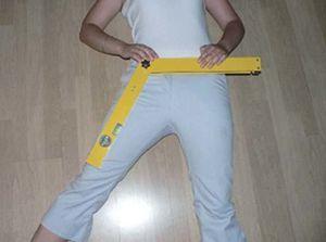 • Decúbit supí amb un eix del goniòmetre sobre ambdues crestes ilíaques del maluc i l'altre eix cap al genoll de la cama de mesurament. S'abduirà al màxim el maluc que es mesuri. Caldrà mesurar les dues cames (fig. 5).