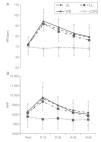Figure 2. Changes in (A) heart rate and (B) rate pressure product during the recovery period.