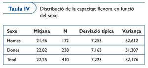 De la mateixa manera, les noies presenten una lleu millor capacitat flexora (X = 22,82 cm) que els nois (X = 21,46 cm).