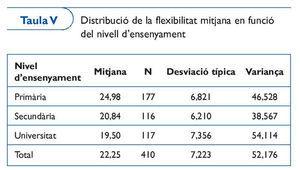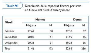 Per últim, en la taula VI s'estableix la flexibilitat mitjana dels diversos nivells d'ensenyament en funció del sexe.