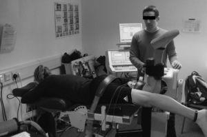 Procedimiento exploratorioUna semana antes del comienzo de la fase experimental, todos los participantes fueron sometidos a una sesión de familiarización con el propósito de conocer la correcta ejecución técnica del procedimiento exploratorio a utilizar mediante la realización práctica de numerosos intentos máximos y submáximos de acciones de flexión y extensión de rodilla empleando diferentes velocidades y contracciones musculares (concéntrica y excéntrica). Igualmente, otro propósito de esta sesión de familiarización fue la reducción del posible sesgo de aprendizaje sobre los resultados obtenidos a lo largo de todo el proceso de recogida de datos. Tras la sesión de familiarización, cada participante fue examinado un total de 3 sesiones, con un intervalo de tiempo de 72-96h entre sesiones consecutivas24. Cada una de las sesiones de valoración fue llevada a cabo por los mismos dos experimentados clínicos (uno controlaba la correcta posición del participante durante todo el proceso exploratorio y el otro conducía el test) bajo las mismas condiciones ambientales y franja horaria para tratar de minimizar la posible influencia de la variabilidad interexaminador y de los ritmos circadianos sobre los resultados16. Además, los participantes fueron instados a realizar cada una de las sesiones de valoración en los mismos días y franja horaria que normalmente realizaban sus sesiones de práctica físico-deportiva para minimizar la variabilidad intrasujeto26.
