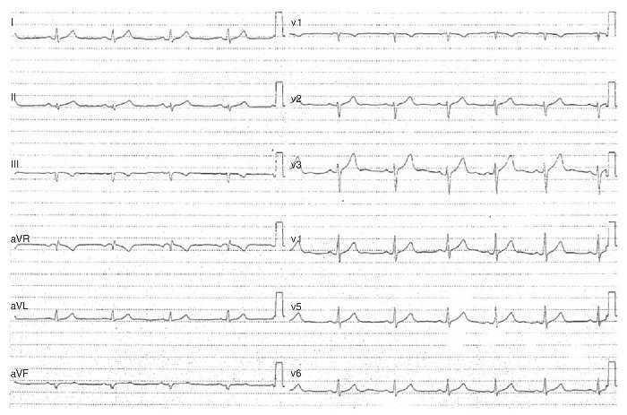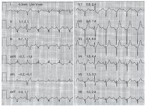 Presentación del casoHombre de 26 años, jugador de rugby profesional, entrenamiento de 10 h semanales desde los 16 años, sin antecedentes familiares ni personales de interés, sin hábitos tóxicos, con exploración física y ECG (Figura 1) normales.