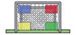 Primera sesión: índice de sudoración con hidratación ad libitum. Después de llegar al vestuario, antes del entrenamiento, se pidió a los jugadores que depositaran los frascos de orina en un contenedor. Entonces se les tomó la frecuencia cardíaca en reposo (S Health) y la temperatura timpánica. Se utilizó un termómetro timpánico de infrarrojos (EasyScan, FTX3 VERT) que se introdujo en el canal auditivo izquierdo 3 veces consecutivas y se hizo la media de la lectura de la temperatura timpánica. Se pesó a los participantes, en ropa interior, en una báscula electrónica (Tanita, BC-601) de una precisión de ±100 g. Tras un calentamiento físico estándar (±30 min), en una área preparada y acondicionada, llevaron a cabo una prueba de ejecución de fútbol que incluía el salto vertical y el lanzamiento de penaltis. Desde una posición de bipedestación con los pies separados a la misma distancia que la anchura de la cadera, se pidió a los participantes que doblaran lentamente las rodillas hasta que la cadera alcanzara una marca de flexión de rodilla de 90° y luego tenían que saltar tan arriba como les fuera posible. Ejecutaron 3 saltos verticales19, siempre con las manos en la cadera, para estabilizar la ayuda de la parte superior del cuerpo. Los saltos se alternaron en períodos de 30 segundos de descanso y de mantenerse en pie. El tiempo de vuelo se midió con una APP del sistema operativo IOS denominada «My Jump». Los jugadores realizaron 8 lanzamientos de penalti al poste de la portería, en donde había una red de retención19. Esta red tiene 4 áreas de precisión en las esquinas provistas de una red con bolsa para recoger las pelotas y con unas bandas con ganchos para fijar la red en los postes, es decir, solo se podía marcar un gol si los lanzamientos eran ejecutados correctamente en los ángulos de la portería según las indicaciones de cada caso. Los primeros cuatro penaltis se lanzaron con una señal auditiva procedente de un silbato, es decir, sin decisión, con la indicación que los dos primeros iban a la esquina superior derecha y los dos siguientes a la esquina superior izquierda, se les indicó que «estuvieran listos» y lanzaran el balón para marcar en cuanto oyeran el silbido. La realización fue registrada por equipos de vídeo que posteriormente se analizó con el software Kinovea. Después de estos 4 penaltis, y en las mismas condiciones, los 4 lanzamientos de penalti que se iniciaron con una señal visual, o sea con decisión, se registraron mediante tarjetas de colores, que correspondían a los colores marcados en cada esquina de la red de retención (fig. 1). Se les indicó que lanzaran el balón a la esquina correspondiente tan pronto como vieran la tarjeta de color. La realización del test duró aproximadamente 15 min.
