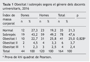 Malgrat que comptem amb una llei que promou l’activitat física als centres educatius4, és de vital importància que s’enforteixi la promoció d’un estil de vida saludable que inclogui el consum d’aliments saludables i l’augment de l’activitat física. Així es reduirà el risc de patir malalties cardiovasculars i diabetis mellitus i millorarà la qualitat de vida dels mestres i professors en la seva atrafegada vida3.