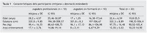 Tots els jugadors foren valorats clínicament i conjuntament pels metges del primer equip (GR) i del segon equip (GH) del club. S’enregistraren la talla, el pes, l’edat, els anys de pràctica de bàsquet i la presència o absència de símptomes de tendinopatia rotular durant les últimes dues temporades. Dels 20 jugadors, 12 havien presentat símptomes almenys 2 vegades per temporada, els últims 2 anys, en el tendó del genoll dominant. En el moment de fer el test tots els jugadors es trobaven asimptomàtics pel que fa al dolor a nivell del tendó rotular. A la taula 1 es presenten les característiques de la mostra analitzada.