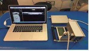 Totes les valoracions es van fer al matí, a l’inici de la pretemporada, els jugadors en edats formatives el dia 18 d’agost, i els jugadors professionals el 25 d’agost. Realitzà l’exploració el mateix expert en ultrasonografia i UTC (GH) d’ambdós tendons rotulars, mitjançant ecografia en mode B amb un transductor lineal de 7-10 MHz (SmartProbe 10L5; Terason 2000, Teratech, EUA) muntat sobre el dispositiu que mou el transductor de forma automàtica en l’eix perpendicular del tendó i que grava les imatges transversals a intervals de 0,2 mm sobre una distància de 12 cm (600 imatges axials) (fig. 1). El dispositiu estandarditzà l’angle d’inclinació de la sonda, el guany, el focus i la profunditat. La captura de les imatges i els mesuraments d’UTC es realitzaren d’acord amb un protocol estandarditzat, aplicat en altres estudis6.