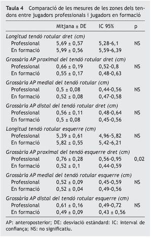 Comparació dels tendons entre jugadors professionals i jugadors en formació