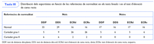 Taula III Distribució dels esportistes en funció de les referències de normalitat en els tests lineals i en el test d'elevació de cama recta