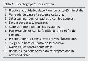 Atendiendo a estas consideraciones, las actividades educativas incluidas en el programa «Menorca borina’t (muévete)» consiste en el diseño de talleres teórico-prácticos ofrecidos por el Consell Insular de Menorca en el marco del programa de Salud Joven y Cultura (Salut Jove i Cultura), dirigidos a escolares inicialmente de 3.º y 4.º curso de primaria (8 a 10 años de edad) y posteriormente extenderlos a otras edades y ciclos educativos. Estos talleres se imparten en los propios centros en horario lectivo e incluyen una exposición teórica de 60 min de duración y la presentación de un decálogo de buenas prácticas para ser activos (tabla 1), y una parte práctica con una caminata por la rutas urbanas saludables. A grandes rasgos, los talleres incluyen una exposición de los problemas de salud derivados del sedentarismo y los beneficios del estilo de vida activo y de la práctica de ejercicio físico, presentando diferentes opciones de promoción de actividad física para la salud con la intención de lograr su complicidad para este propósito. Así, los propios alumnos se convierten en promotores de la actividad física dentro del centro educativo y su entorno familiar más cercano.