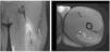 Un jugador de fútbol profesional de dieciocho años sufrió el mismo tipo de dolor en las mismas circunstancias. Los signos clínicos eran exactamente similares a los del caso de los isquiotibiales agudos descrito, pero la prueba de RM mostró imágenes diferentes (figs. 3 y 4) porque la lesión estaba localizada en el tendón libre del bíceps femoral. La longitud del tendón libre fue 8,5 cm y la lesión fue localizada a 6,5 cm de la tuberosidad isquiática. Debido al largo período de recuperación y a un alto índice de relesión, debía considerarse el tratamiento quirúrgico. Por tanto, se realizó la escisión del tejido cicatricial, incluyendo la parte rasgada del tendón y la sutura sin tensión del remanente del vientre del bíceps femoral al semitendinoso adyacente, con el fin de proporcionar tensión al tendón y refuerzo con anclaje en la tuberosidad isquiática (figs. 3 y 4).