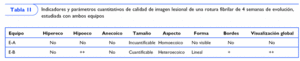 En la tabla II se comparan los indicadores de calidad con ambos equipos.