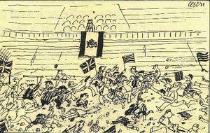 Al iniciar este artículo hemos insinuado que nos proponíamos escribir unos párrafos dedicados al deporte, un aspecto de la actividad de Cesc que no había estado referenciado directamente en ninguno de los trabajos consultados. En principio creemos que Cesc no tenía especial interés por esta actividad, aunque tampoco hemos hallado argumentos contrarios a esta afirmación. Sí existen pruebas de que poseía un enraizado barcelonismo, posiblemente más que por el juego en sí, por lo que este concepto patriótico representaba. Desde buen principio, durante los primeros años setenta, estuvimos vinculados ideológicamente y económicamente con Premsa Catalana. Hemos vivido el Avui desde la diada de 1976 hasta hoy. Fueron unos años difíciles: transición política, Generalitat, gobierno catalán, discrepancias idiomáticas, elecciones continuadas, etc. Recordemos que los chistes de Cesc salían entonces en primera página y que reflejaban los hechos más importantes ocurridos en la jornada. Todo esto nos llevó a coleccionar la totalidad de los chistes de Cesc aparecidos en el diario en el curso de los años en los cuales colaboró en Avui (más de 3.000). La cuidadosa contemplación de la colección nos ha permitido identificar unos 80 chistes de cariz deportivo. Curiosamente, el primer chiste de esta temática no se publicó hasta finales de febrero de 1977; un descarado arbitraje contra el Barça, durante el cual fue expulsado del campo el mítico Johan Cruiff, motivó una airada y violenta reacción de protesta sociopolítica, que fue cabecera de todos los diarios. El Barcelona y el fútbol son los temas más repetidos (37 de fútbol, de los cuales 21 pertenecen al Barça). Otros temas siempre de actualidad son el Campeonato del Mundo de Fútbol de 1982, el Olimpismo hasta la concesión de los Juegos Olímpicos del 92, el Campeonato de Europa de baloncesto, hockey, atletismo, vela y alpinismo. Los años ochenta son los más prolíficos en materias deportivas. Aparte de estos dibujos de la colaboración diaria dedicados al deporte, han llegado a nuestro conocimiento otros procedentes de diferentes publicaciones, algunos en color, plasmados en distintas técnicas más cercanas a la pintura.