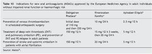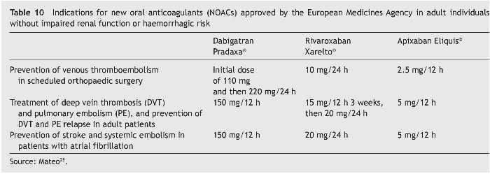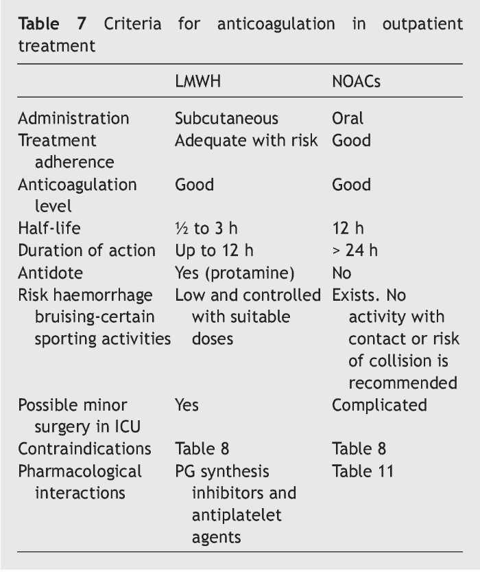 In athletes the decision to use LMWH or NOACs will depend on the experience of the medical team and the type of sport played. Table 10 shows the concepts in relation to the possible use of one or another and the interactions with certain treatments or nutrients are shown in Table 11.