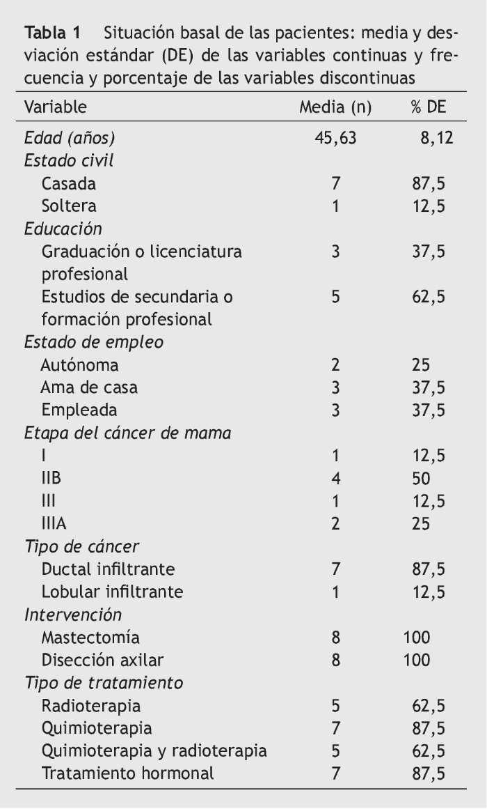 Varios estudios27 han descrito que el cáncer de mama y sus tratamientos afectan significativamente a la CV a través de la alteración de la función física, el dolor corporal, la vitalidad, las funciones social y familiar, el bienestar emocional, la salud mental y la salud general.