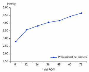 • La suma de les forces màximes relatives obtingudes en els 7 punts del ROM és de 27,12 ± 5,82 Nm/kg de pes.