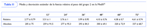 • La fuerza máxima relativa al peso corporal es de 4,61 ± 0,94 Nm/kg de peso.