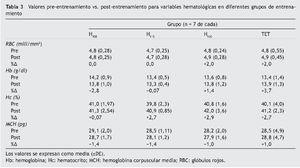 Los cambios en las variables fisiológicas se presentan en la tabla 1. Tras el entrenamiento