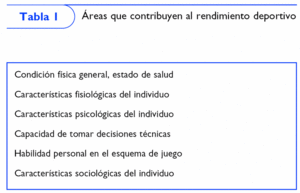 Pero identificar los componentes que configuran un talento deportivo no es fácil. Existen aproximaciones en este y en otros deportes, individuales y de equipo, para reconocer ciertas aptitudes que puedan identificar al futuro profesional. Las aptitudes para una actividad compleja varían durante el desarrollo físico del individuo, y éstas aumentarán o no en función del aprendizaje impartido en cada período. En la tabla I se muestran algunos ámbitos donde hallar las características que determinan un buen rendimiento deportivo.