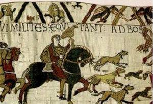 Figura 1 Una de las primeras representaciones de un noble con un halcón en la mano. Fragmento del tapiz de Bayeux, ca. 1070.
