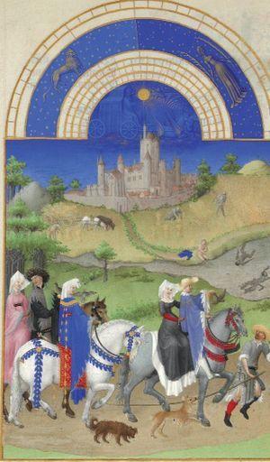 Al ser la caza una forma de ocio totalmente ligada a la aristocracia, pues, su aparición en las ilustraciones de los códices se produjo principalmente a partir de finales del siglo XIII. Antes se puede observar en otras representaciones, como por ejemplo el tapiz de Bayeux, pero en los libros su presencia en Occidente es muy reducida, y unos de los pocos ejemplos son algunos calendarios carolingios (figs. 1 y 2).