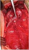 Figure 3 Intraoperative view. Free-tendon (FT), sciatic nerve (SN), semitendinosus (ST) and LHBF (long head of biceps femoris).